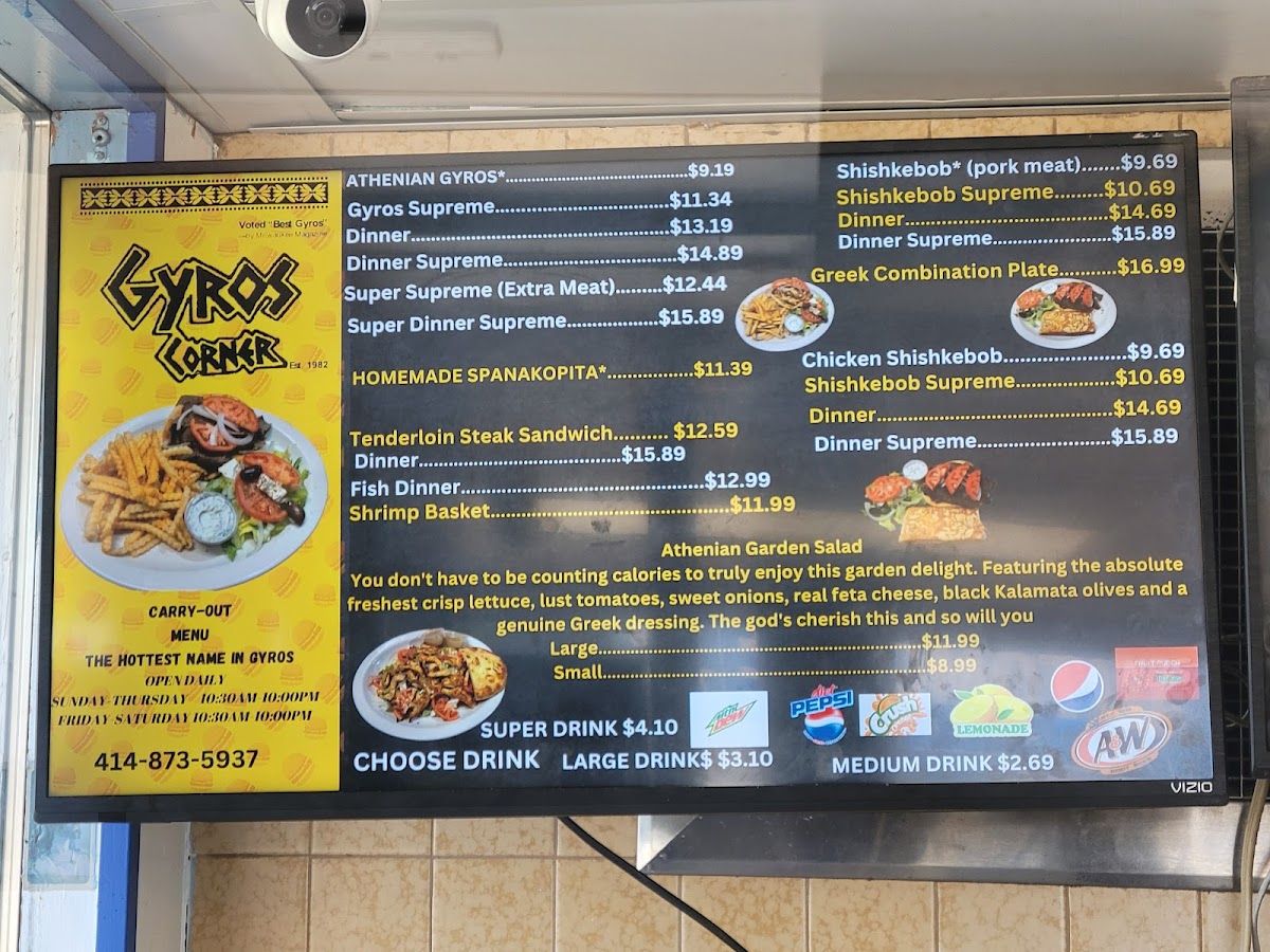 Welcome to Gyros Corner, a hidden gem located at 5914 W Appleton Ave in Milwaukee. If you’re craving authentic gyros, this bustling eatery is your go-to spot. The menu shines with generous portions of gyros and perfectly cooked fries, as noted by satisfied customers like Marta Julia, who praised the abundance of meat and rewarding pricing.